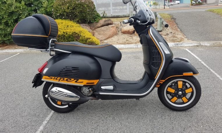 The GTS300 Super Sport has always been a head turner and in matte black it looks even better. This is an extraordinary Super Sport in showroom condition with genuine cruiser windscreen, rear fold-down rack and matching top box with backrest pad fitted. Vehicles like these don’t come up often and sell very quick. Don’t hesitate to get in touch with us via phone (08 9300 1719) or pop in into our shop in Balcatta and take this beauty for a test ride.